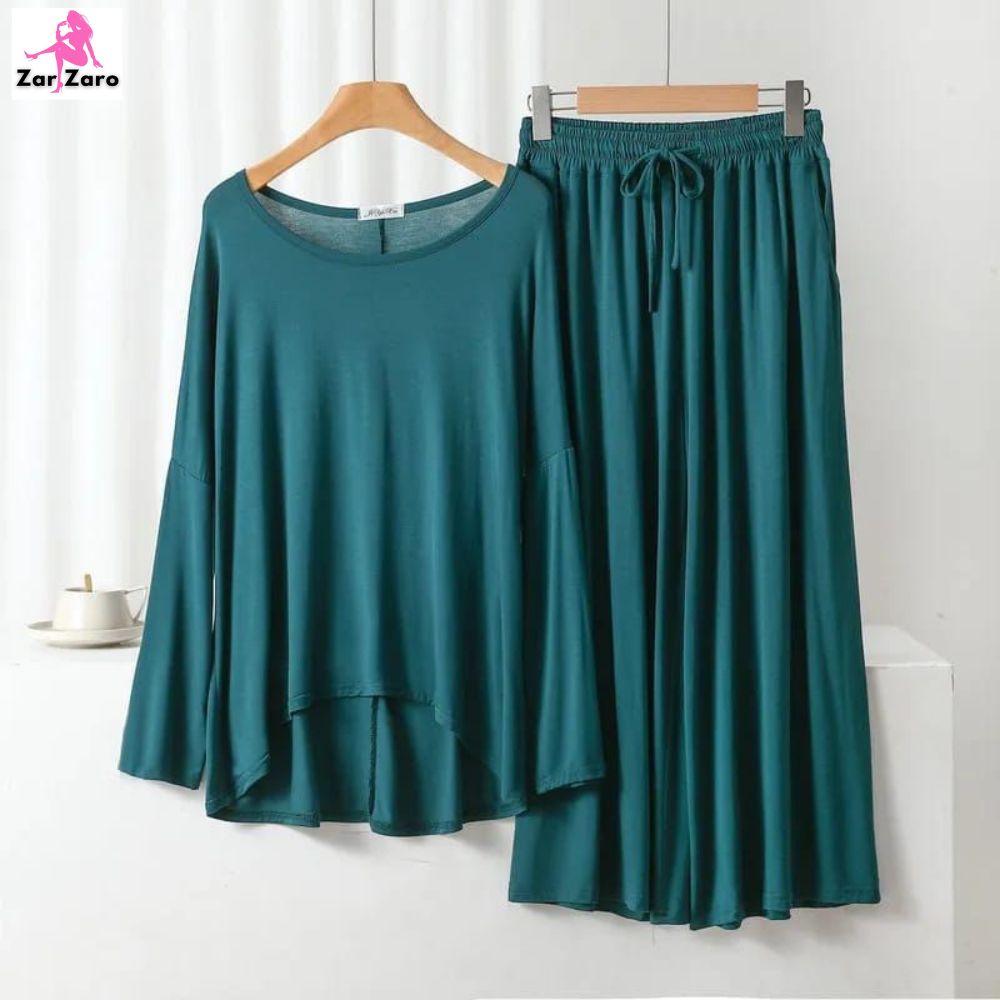 - Expertly crafted for year-round wear, this Deep Green Plazzo PJ Set features soft, high-quality cotton jersey and impeccable stitching for a perfect fit that will keep you comfortable all night long. Elevate your sleepwear collection with this stunning set – don’t hesitate, place your order now! Your dress will look identical to the image shown.